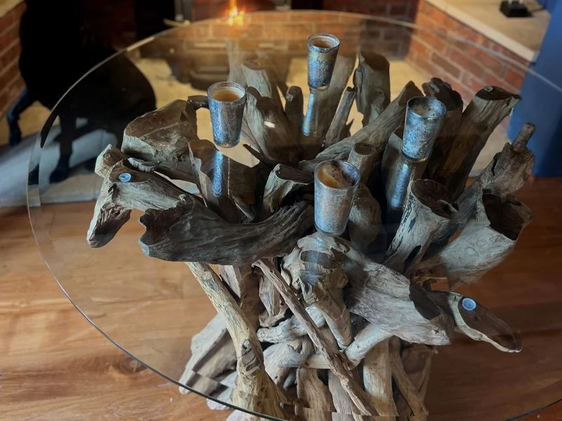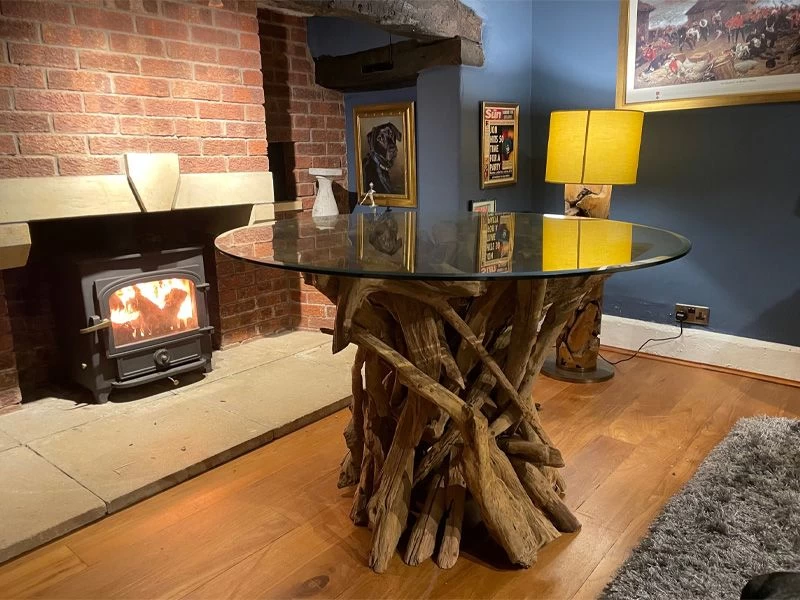 The 10cm thick tempered glass top and allows you to always see the detail of the teak root whilst relaxing and catching up with friends and family!