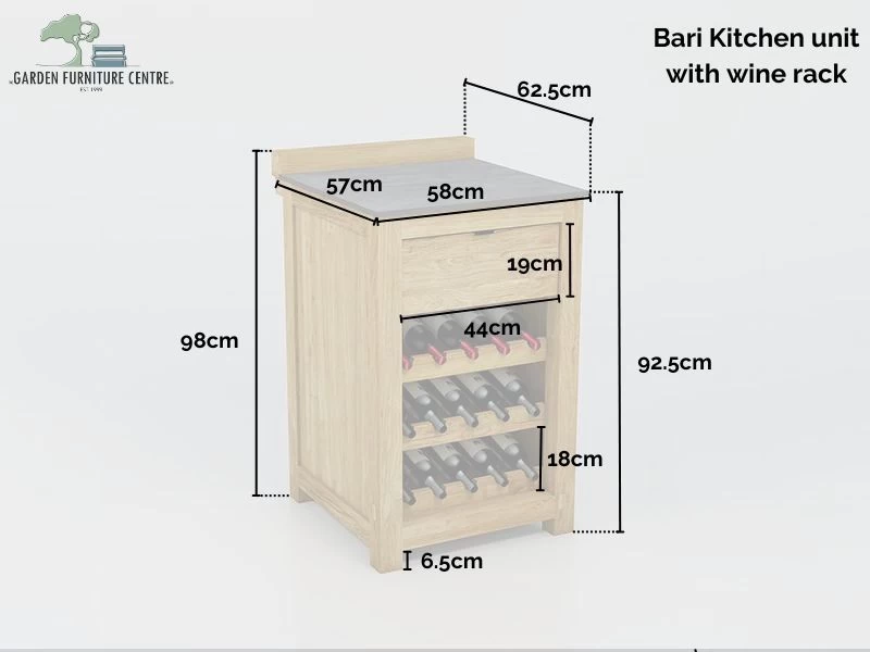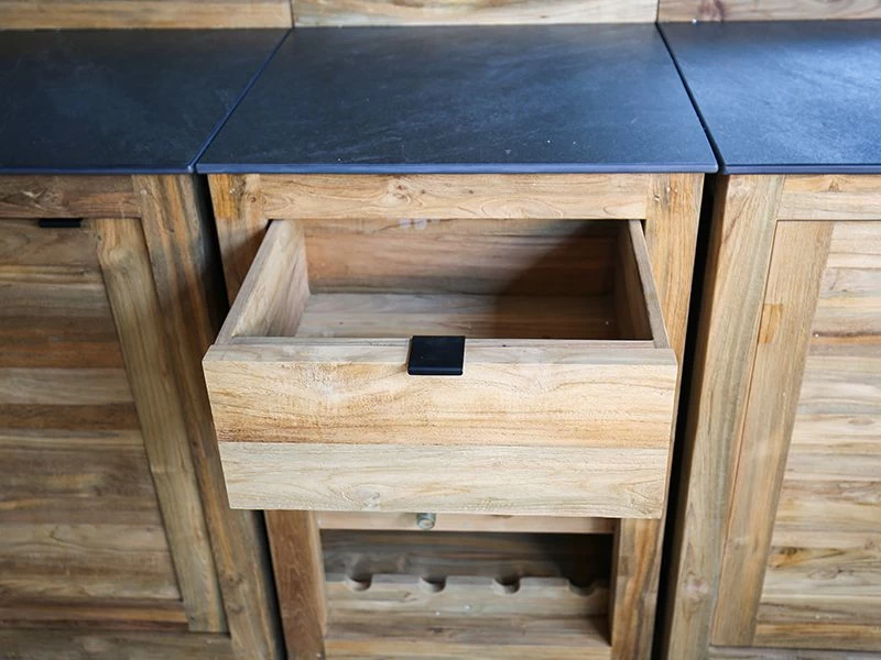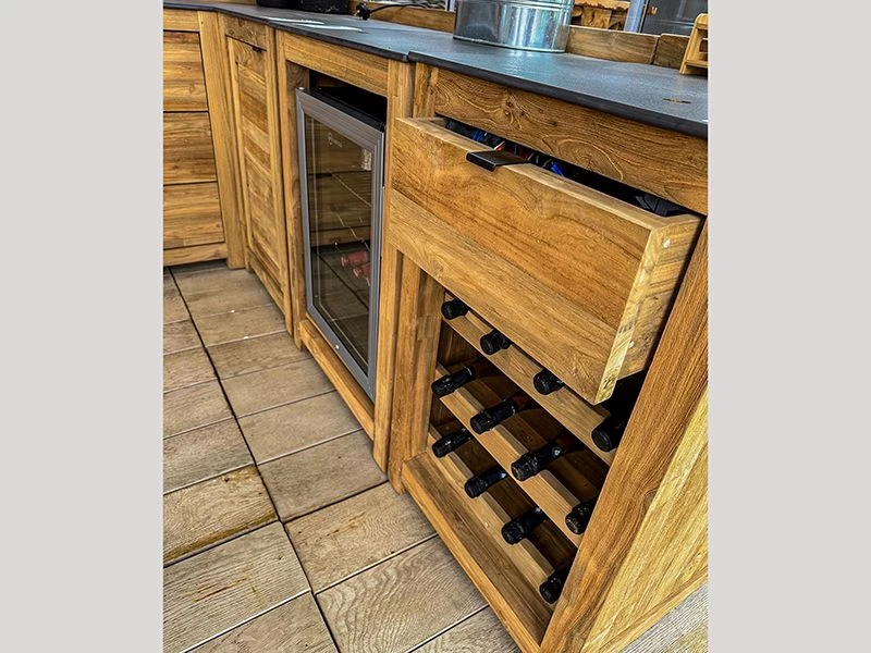 Fully effective and finished with a beautiful teak exterior, this outdoor kitchen wine cabinet unit is crafted to last you a lifetime!