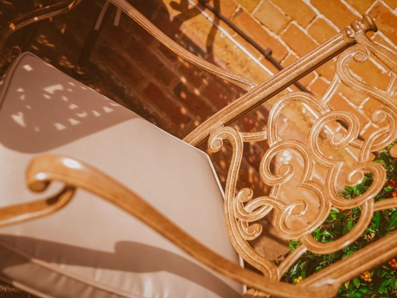 The chair cushion is filled with polyester fibre which does not hold water allowing it dry quickly and preventing deterioration.