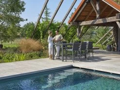 The frame here is made from tough powder-coated aluminium making it really quick to wipe down and maintain over time and great for use outdoors all year round.