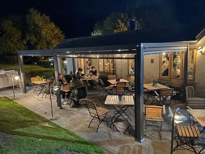 The gazebo is resistant to wind up to a wind force of 120 km/h.