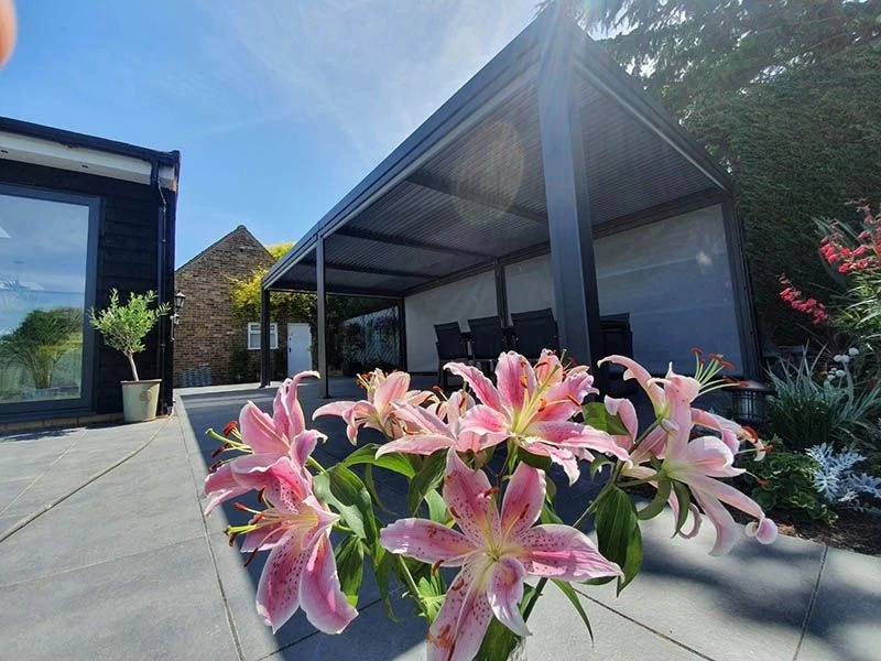The mainframes and roof shutters are made from toughened aluminium with a silver-grey powder coating that looks great and adds to the contemporary feel.