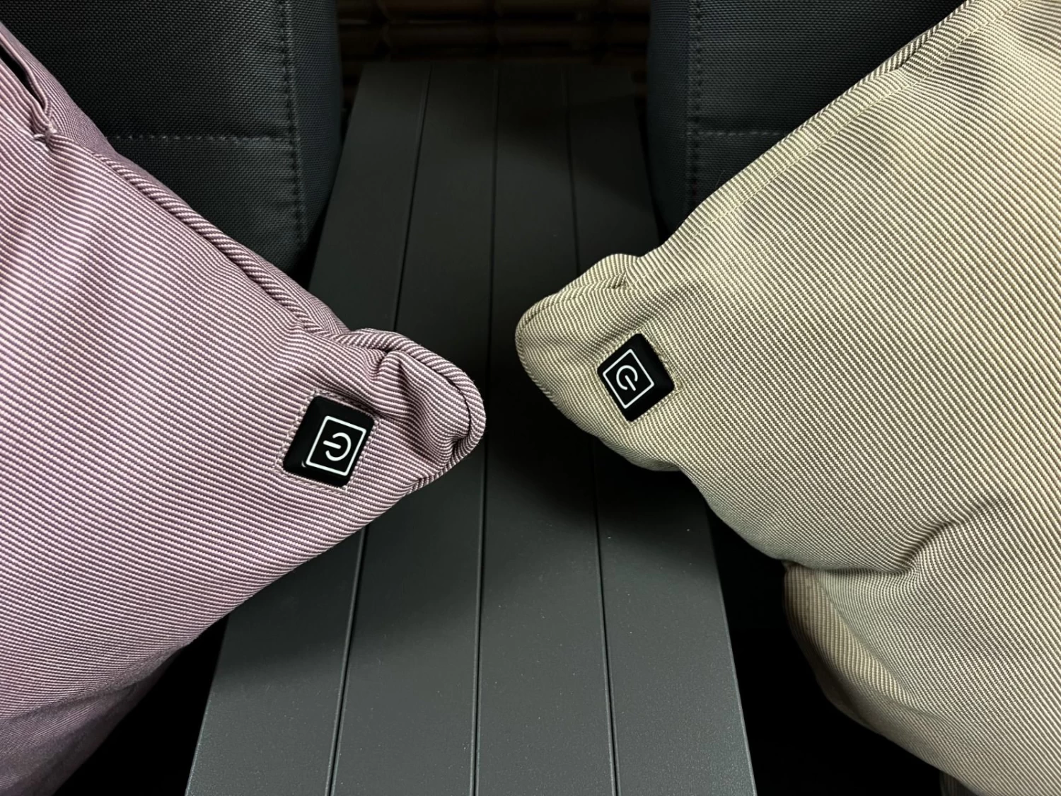 With three heat settings and pockets on the side to keep your hands warm! There’s also a charger included in the cushion.