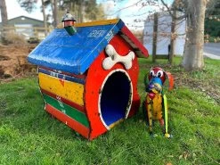 The designs are all handmade from recycled shipping drums and other scrap metals making each one bespoke to the buyer and the dog, of course.