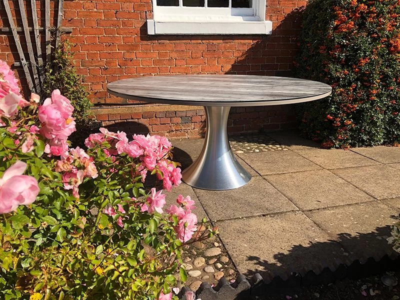 With a shiny machined aluminium middle support and coated aluminium frame, this lovely outdoor table looks great and will withstand the test of regular use.