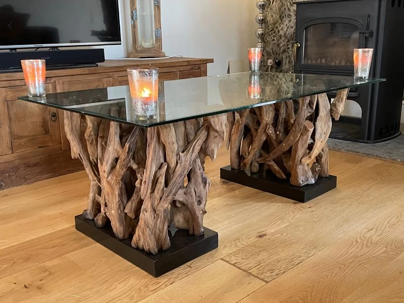 Hand crafted from genuine reclaimed teak root this rectangular coffee table is completely bespoke to the individual buyer.