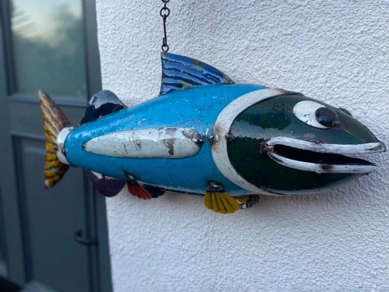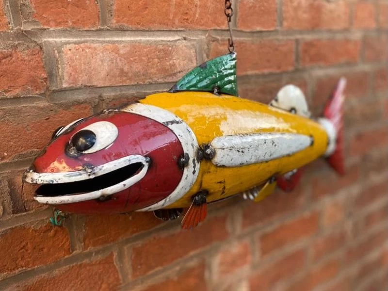 A fantastic design hand finished from recycled shipping drums and other metals with a design that stands out and catches the eye.