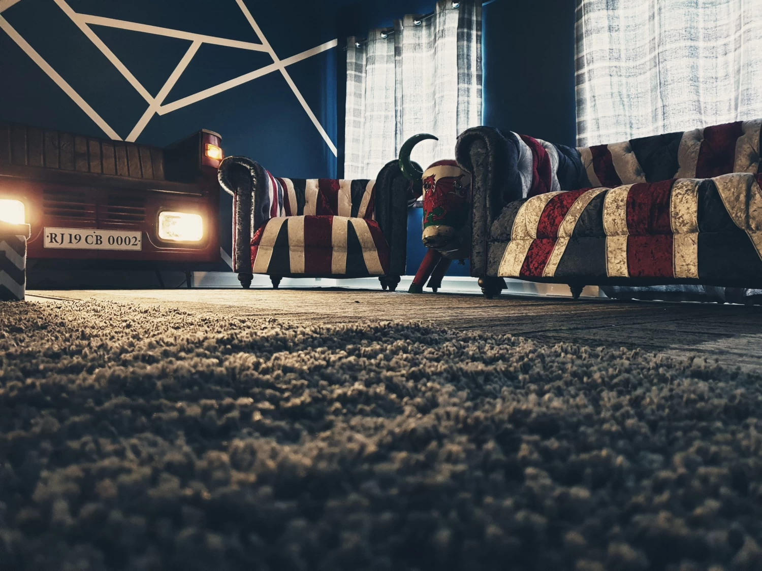 The crushed velvet fabrics highlight the Union Jack design and add that luxury appeal throughout.